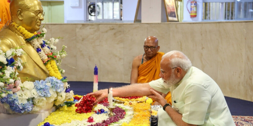 During his visit to Mumbai, PM Modi went to Chaitya Bhoomi and prayed. He posted pictures of his visit on the microblogging site X with a message, “Upon landing in Mumbai, I went to Chaitya Bhoomi and prayed there. It feels very special to come back here again. Every Indian is grateful to Dr. Babasaheb Ambedkar for giving us a Constitution we take immense pride in. Our Government has always and will always strengthen the ideals of Dr. Ambedkar and the values enshrined in our Constitution. Jai Bhim!”